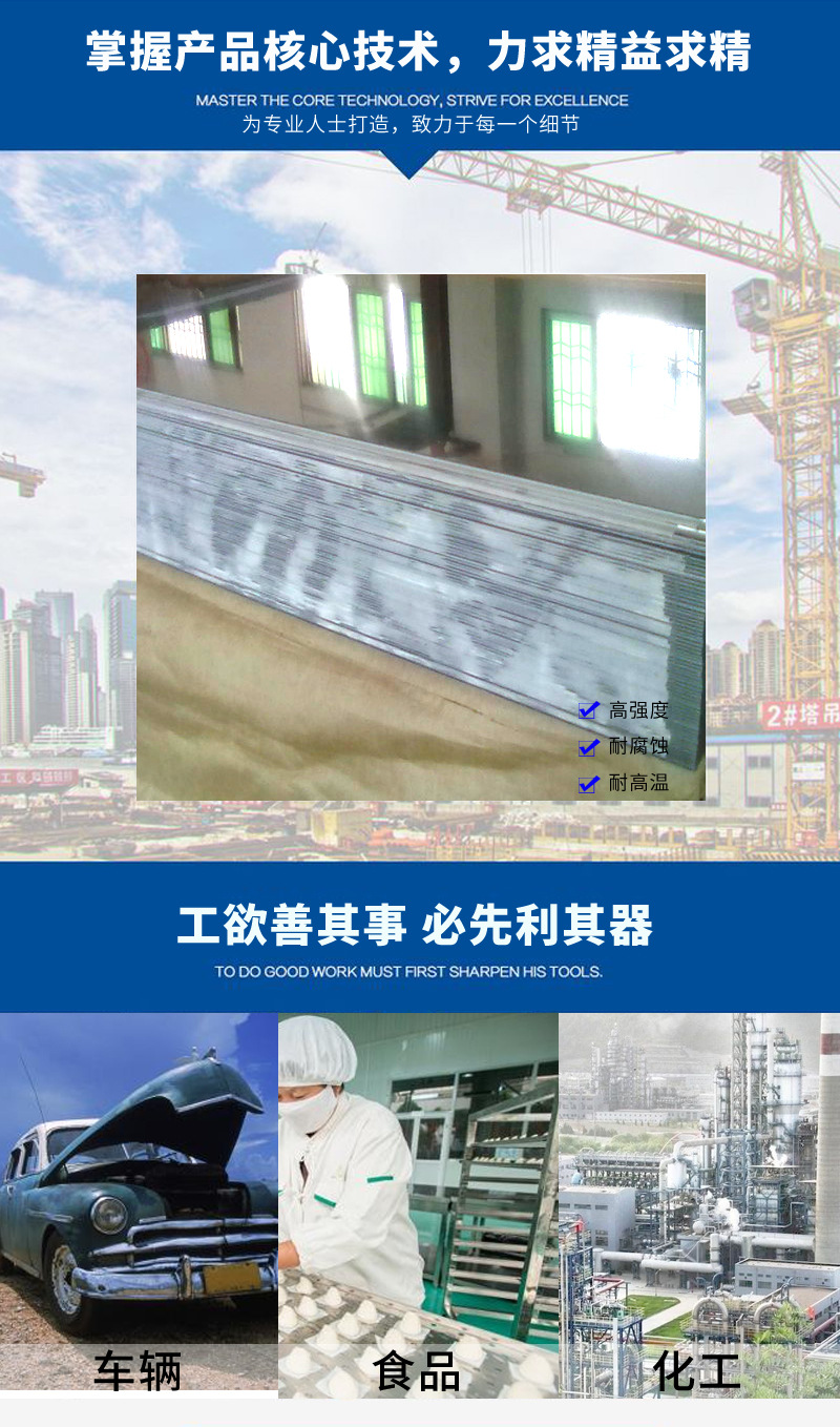 适用于耐蚀性好(有磁性) 餐具(刀)、涡轮机叶片 淬火后,比440A钢硬度升高(有磁性),刀刃、管嘴、阀门、板尺、餐具(剪刀)。